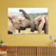 two female elephants(cows) having a quick greeting on A stretched canvas is the perfect artwork to compliment the room in your home where this will hang. It will create conversations and be a centerpiece for everyone to enjoy. This was taken near a waterhole on Addo Elephant park.