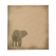 A single elephant stands in the bottom corner against aged paper