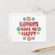 An elephant lover can share their love with this very colorful design with spirals and the words - Elephants make me happy. It makes a great gift.