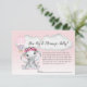 Adorable baby girl elephant with pink roses on head, cute elephant in pink hot air balloon with white cloud backdrop, on a pink gradient background. Templates provided on back.