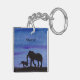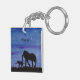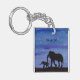 A watercolor painting of a baby and mother elephant adorns this customizable keychain!
