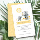 This charming baby shower design features a sweet mom and baby elephant with yellow flowers, perfect for celebrating the arrival of a new baby. The adorable elephant motif adds a whimsical touch making it a delightful choice for a baby shower celebration. The soft color palette and floral accents create a warm and inviting feel, setting the tone for a special event to welcome the little one.