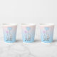 Elephant Love Pink & Blue Heart Balloons Design Paper Cups with customizable text. Perfect for a Gender Reveal or for announcing fraternal twins.