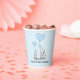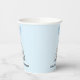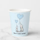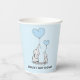 Elephant Love Blue Heart Balloons Design Paper Cups with customizable text and background color.