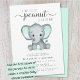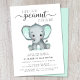 Elephant Mint Green Watercolor Baby Shower Invitation