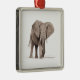 "A charming watercolor illustration of an elephant, delicately painted with soft, muted tones and subtle washes of gray and blue. The elephant is rendered with gentle, flowing brushstrokes, giving it a whimsical and serene feel. This delightful design is featured on a smooth ornament, perfect for adding a touch of nature-inspired elegance to any space or holiday décor."