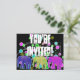 Neon elephants walk in row with a bright cosmic background and curly lines on back for the who, where and when of your party!