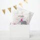 A cute illustration of an elephant partying and having fun! Elephant wearing a party hat and blowing party horn with confetti raining down on it. Let the celebrations begin! Perfect for anyone who loves funny animal illustrations. Ideal birthday party favor bags. Customize the occasion and name and make it your own.