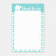 Whimsical white elephant design pattern over an aqua background. "work to do" or change text as preferred.