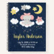 This cute and whimsical notebook features an adorable baby elephant in a pink bow sitting on a cloud with falling stars. In the background is a starry night sky and crescent moon. The text combines handwritten script and sans serif fonts for a stylish and modern look. It can be personalized with your baby's birth stats, such as name, size, date and time of birth, or if you would like to give it as a shower gift you are able to edit and remove text.