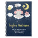 This cute and whimsical notebook features an adorable baby elephant in a pink bow sitting on a cloud with falling stars. In the background is a starry night sky and crescent moon. The text combines handwritten script and sans serif fonts for a stylish and modern look. It can be personalized with your baby's birth stats, such as name, size, date and time of birth, or if you would like to give it as a shower gift you are able to edit and remove text.