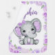 Girl Elephant with Purple Bow Baby Blankets Lavender Floral Name