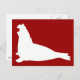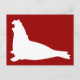 A pure white elephant seal on a scarlet red background printed just for you on a very fine postcard.