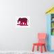 Silhouette of an elephant based on a vintage 1800's advertisement in a gradient from pink to dark raspberry red.