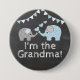 This adorable badge or pin back button tells all your baby shower guests "I'm the Grandma". Blue, grey and white polka dot elephants. Chalkboard look background image. Bunting flags. Customize the font. Personalize this badge for all family relatives. Perfect for big sister, aunt, great grandmother, Godmother and the mom-to-be. This image is available in other colors with matching products. Please visit "The Hungarican Princess - A Boutique" @ zazzle.com/hungaricanprincess* . Look in the "Baby Shower" category department or collections page. Congratulations.