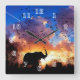 Elephant Silhouette Square Clock