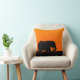 Throw pillow with a black silhouette of an elephant grazing on the lush grass of Sidudu Island in the Chobe river in front of an orange sunset.
