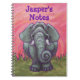 Animal Parade Elephant Photo Notebook are for the fun side of you featuring our original art of a cute cute elephant character standing in the green grass of the Savannah with a pink sky and a wavy purple border painted by our talented children's artist, Traci Van Wagoner. On many of our whimsical animal products, you’ll see the fun pachyderm coming and going with this fun artwork of the whimsical elephant’s head on the front and the safari elephant’s tail on the back. Join the Animal Parade and buy an entire set of matching customizable Animal Parade Elephant home and office accessories today. Perfect for elephant lovers of all ages.