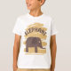 The design features a charming cartoon-style illustration of an elephant, rendered in warm brown tones. Its large, expressive eyes and wide ears give it a friendly and approachable character. The elephant’s trunk gracefully curves downward, adding movement to the composition. Behind it is a yellow brushstroke-like backdrop, which adds a splash of playfulness and contrast. Above the elephant, the word “ELEPHANT” is displayed in bold, all-caps brown lettering that complements the character’s color and feel.