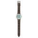 I was uncertain about the size being too small but it looks good. The case looks like aluminum (not shiny) and the time is easy to see. I changed the band because the leather doesn't go with my lifestyle.a. Exactly what I expected, nice yellow. It grabs peoples attention.