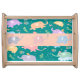 Elephant tray for kids with colorful pastel, illustrated Elephants. The background is green, and the Elephants are lavender, peach, yellow, and light green. Thanks to the Hungryjpeg for some of the elements in the desi
