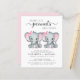 A cute and budget-friendly twin girls couple's baby shower invitation with "Two Sweet Little Peanuts Are On Their Way" written in soft grey modern typography and a stylish script, and two pastel pink watercolors of baby elephants. Add the names of the parents-to-be and the shower details in simple grey typography.