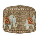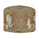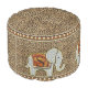 This whimsical design features an elephant walking a diamond-patterned border. The elephant's blanket forms a place to hold your name or monogram. Design is warm orange and gold tones on a patterned cheetah skin background. Search EWMX to see other products with this design.