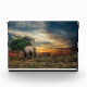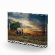 Elephant walking at sunset photo block