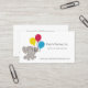 The fun and cute business cards feature a fun and colorful illustration of a baby elephant holding balloons of blue, yellow and red, but despite the fun graphic have an overall spare, minimalistic style that's perfect for children's birthday party venues and party planners who specialize in kids parties.