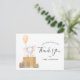 Thank your guests for celebrating the mama to be! This thank you postcard features a watercolor elephant with a yellow balloon sitting on a pile of shipping boxes. Matches our elephant baby shower by mail collection. Personalize with your information or click "Click to customize further" to edit font styles, size and colors.