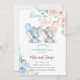 Elephants gender reveal invite, pink blue flowers. invitation