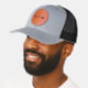 Custom Leather Patch Hat, Sytle: Adult Retro Trucker Cap, Color: Heather / Black, Shape: Circle