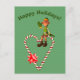 Elf Candy Cane Heart Christmas Holiday Postcard