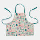 Great color and even though I ordered the kid size, it covers well enough to use during the holidays. I am not a big woman and prefer a shorter apron. I stand 5"6" and the length of the garment goes to mid-thigh. The tie straps fit well at my waist and even though there is no neck strap adjustment, the opening is plenty big enough. I am happy with the size and fit. I am sharing my apron with my 10 year old grandson, too! The color is vibrant and looks good, as shown on the website. The stitching looks strong and reinforced. Photographed is front side and back side of the apron, reinforced straps and coloring. My phone camera may not be the best at showing the details.