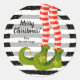 Elf legs in striped tights and green boots on black and white stripes, these stickers include Merry Christmas and your names. MATCHING items in our store.