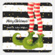 Elf legs in striped tights and green boots on black and white stripes and gold dots, these SMALL 1/2" Christmas stickers include your personal greeting or leave that personalization blank. You can also select 3" stickers. MATCHING items in our store.