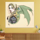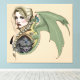 A blonde haired female warrior elf wearing jewelled armour. A small green dragon sits on the blonde elf's shoulder.