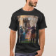 My 11 yo wore adult XL (5’7” 165#). The 8yo is small framed. She wore adult small and tied it in the back. Grandma wore adult large with long sleeve shirt underneath. Tall girl adult medium. Dark haired male adult large. Good quality dark Heather gray, Gildan brand shirt. -it was next up from basic choice and cost about $20 per shirt. Not too thick or thin. Washed and dried well, no major shrinkage. Not see-through. Can wear a bra under it fine. Screen print is just as shown and well done, front and back.