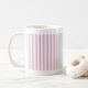These generously sized white china mugs are decorated with lovely and delicate stripes.