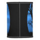 A beautiful lamp shade of an elk backlit by a big blue full moon with birds and an oak tree. Has a mystical feel to it.