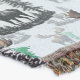 A quality printed throw has its advantages. This is a much finer weave throw than its loopier cousins, and though lighter, it is worth the investment for custom room accessorizing. The back is much prettier than the typical brown, and the fringe on the long sides very vivid, the selvage nicely done. Before photographing, I washed the throw in cold water, delicate, with a thicker woven throw the same size. On tumble dry low, this throw was dry in half the time as the other. This is a very practical quality if you use throws for furniture covers or to wrap up in frequently. The sleekness of the fabric makes it a great layer for accenting or protecting without the feeling of sitting on too much stuff. Perfect for napping or when you feel a light chill coming on. The color printing is beautiful and on this fabric, matched the design and color of my Photoshop image. This is an advantage for blending room fabrics and colors. The fringe on the short sides prints the colors from the design image and therefore varies from the side fringe. I streaked a white fractal line through the plaid pattern to give the illusion of weaving. This printed as crisp as an illusory thread, and put some white in the short side fringe, showing another advantage of print vs loomed- for artistic purposes, line lines, detail, and color integrity can be planned and preserved. My loomed throws have color limitations and more of a needlepoint texture. Print throws reproduce an exact image. The throw felt a little stiff straight out of the package, but this went away in the first delicate wash. Of course I searched the wash water for ink or bleeding and there was none.