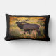 A black throw pillow displaying a bull elk in the beautiful state of Oregon.