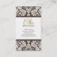Ella #5 Brown Damask Chic Vertical Business Card by BoutiqueMama.com. To customize this design, click on the Customize It link. Works well also as a Hang Tag, Jewelry Tag or Small Bow Card. Matching web design available! See it live at our web design studio BoutiqueMama.com
