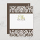 Ella Brown Damask Chic Postcard Vertical by Boutiquemama.com. Can also be used for a Bow Card. To customize it click on the Customize It! button. Matching web design available! See it live at our web design studio BoutiqueMama.com