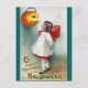 A charming vintage Halloween card featuring a jung girl looking up to a Jack O'Lantern, painted by the American illustrator/commercial artist Ellen Hattie Clapsaddle.