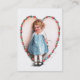 A charming vintage Valentine business card featuring a cute shy girl with a love letter in front of a beautiful flower heart, painted by the American illustrator/commercial artist Ellen Hattie Clapsaddle.