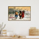 Decorate your wall with a beautiful vintage Christmas poster featuring three children looking up to Santas sleigh, painted by the American illustrator/commercial artist Ellen Hattie Clapsaddle.
