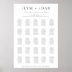 This seating chart poster features a modern minimalist design and 25 tables plus a Bridal table layout. The script text heading is an image that cannot be edited. The heading image can be resized to fit any poster size. All of the other text is fully editable. For more advanced customization of this design, simply select the "Customize It" button above.
