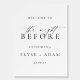 This the night before wedding rehearsal welcome sign features a modern minimalist design. The script heading is not editable. All of the other text can be customized to suit any event. For more advanced customization of this design, simply select the "Customize It" button above.
