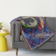 A quality printed throw has its advantages. This is a much finer weave throw than its loopier cousins, and though lighter, it is worth the investment for custom room accessorizing. The back is much prettier than the typical brown, and the fringe on the long sides very vivid, the selvage nicely done. Before photographing, I washed the throw in cold water, delicate, with a thicker woven throw the same size. On tumble dry low, this throw was dry in half the time as the other. This is a very practical quality if you use throws for furniture covers or to wrap up in frequently. The sleekness of the fabric makes it a great layer for accenting or protecting without the feeling of sitting on too much stuff. Perfect for napping or when you feel a light chill coming on. The color printing is beautiful and on this fabric, matched the design and color of my Photoshop image. This is an advantage for blending room fabrics and colors. The fringe on the short sides prints the colors from the design image and therefore varies from the side fringe. I streaked a white fractal line through the plaid pattern to give the illusion of weaving. This printed as crisp as an illusory thread, and put some white in the short side fringe, showing another advantage of print vs loomed- for artistic purposes, line lines, detail, and color integrity can be planned and preserved. My loomed throws have color limitations and more of a needlepoint texture. Print throws reproduce an exact image. The throw felt a little stiff straight out of the package, but this went away in the first delicate wash. Of course I searched the wash water for ink or bleeding and there was none.